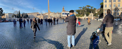 The Piazza Popolo is one of the grandest squares in the world. During the Empire period, it marked the entrance to Rome. We entered through the Via del Corso and immediately came upon the Egyptian obelisk that stands in the center of the piazza. It is the second oldest and one of the tallest in Rome with a fountain of Egyptian-style at the base. There are 2 other large fountains present: The Neptune and the Goddess of Rome. But most important for me, was the Santa Maria del Popolo church where two of the most significant paintings by Caravaggio hang. In this church are two chapels, the Cerasi, which holds the two Caravaggios and the Chigi, which holds two Bernini sculptures. The Caravaggios are difficult to completely appreciate due to the positioning on side walls in the small chapel. Plus, you have to pay to have them lit for viewing. Legend has it that Nero was buried at this sight. A great walnut tree grew at the burial site from which demon wolves began to haunt and terrorize the population. The Pope at the time cut the tree, exorcized the demons and built the church. The factual basis of the legend is weak. No kidding!